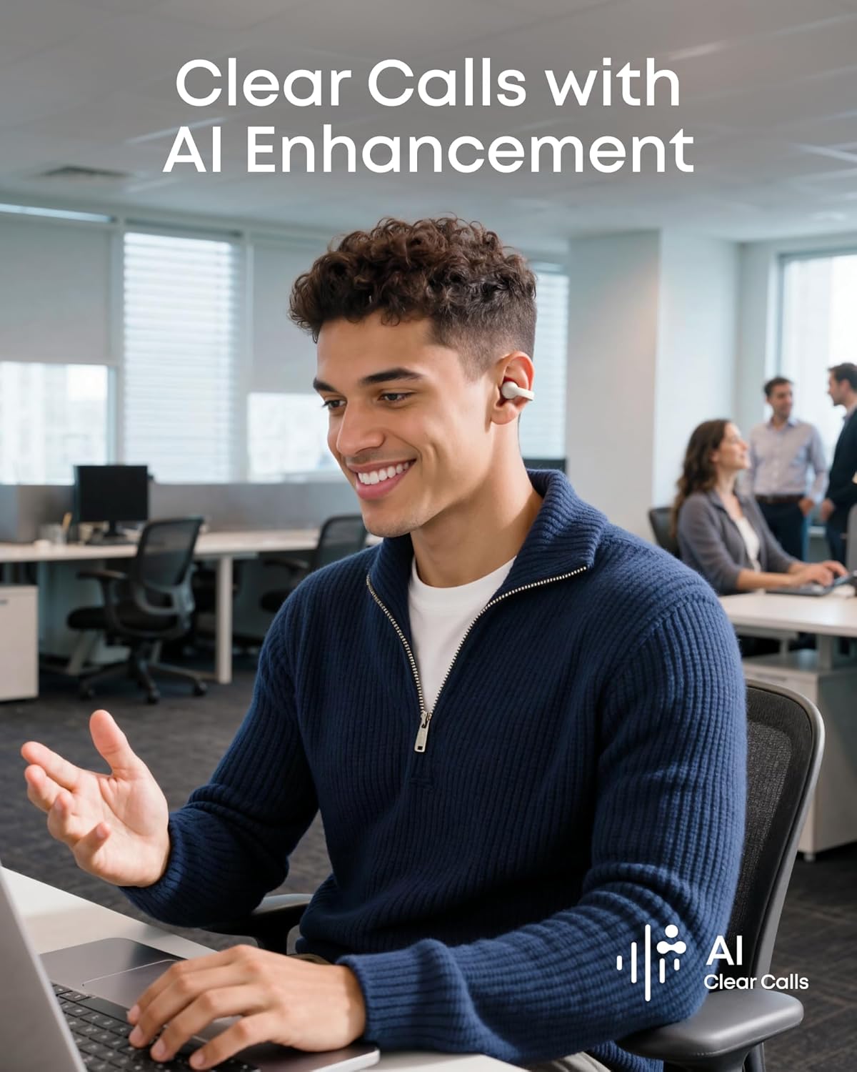 Open-Ear Headphones, Clip-On Earbuds, Ultra-Comfort, FlexiClip Design, 12mm Drivers for Powerful Bass, AI Clear Calls, 28H Playtime, Secure Fit, Hi-Res, IP55, Bluetooth 6.0